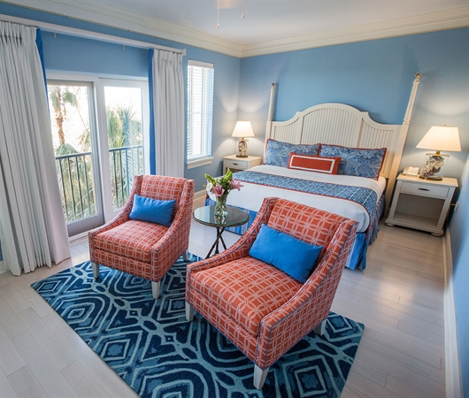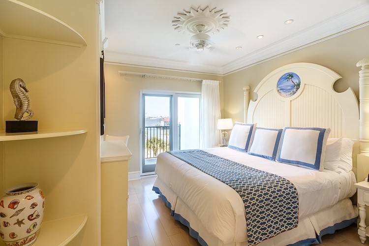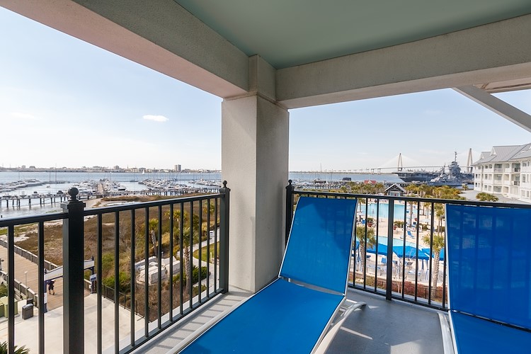 Our waterfront resort near Charleston offers 125 guestrooms with traditional, deluxe, and one- or two-bedroom suite options, each featuring amenities like a coffeemaker, refrigerator, 42” flat-screen TV, and iron and ironing board. To maximize your guest experience, be sure to request a room with a harbor view and a balcony.